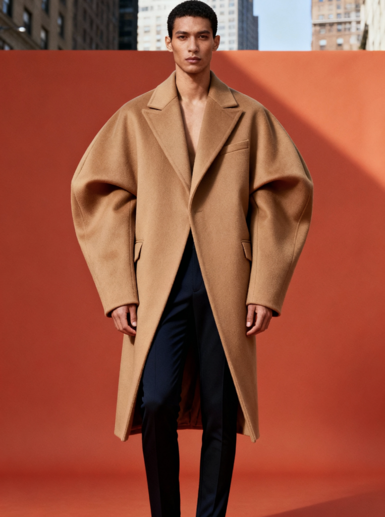 近年のトレンドであるワイドパンツとロングコートの組み合わせは、実は難易度が高いコーディネート。失敗すると野暮ったく見えてしまうため、慎重なバランス調整が必要です。