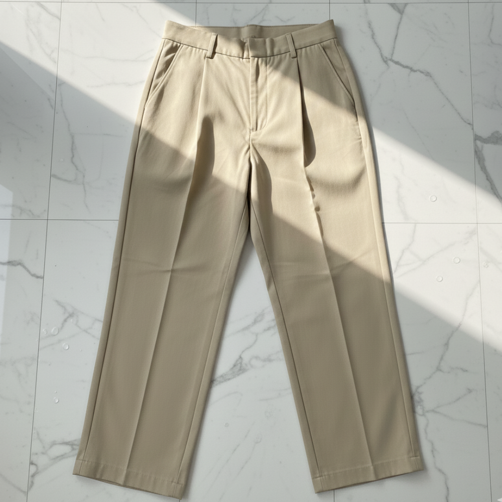 裾がくしゃくしゃに溜まってると、マジで身長が縮んで見えます。まるで子供が制服のズボンをお下がりで着てるみたいな雰囲気になるんですよね。これ、ガチでダサい。