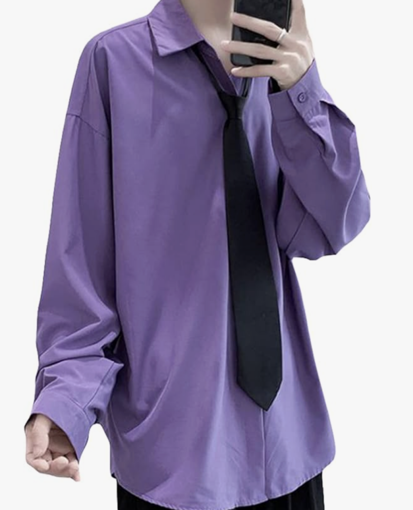 パープルのシャツ 春らしいラベンダーやモーブパープルのシャツは、白Tシャツの上から羽織るだけでこなれ感が出ます。