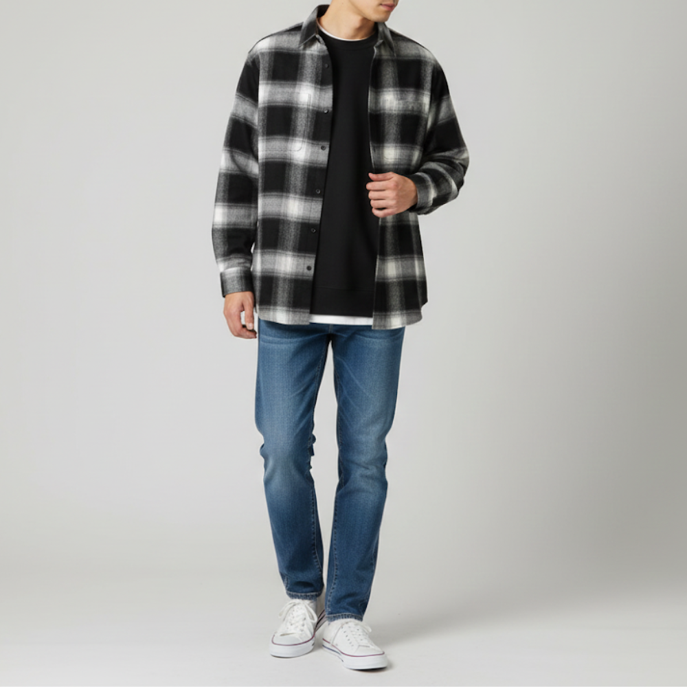 GUのチェックシャツ(1,490円)は正直、ラルフローレンの古着と比べると「安っぽさ」が出る。