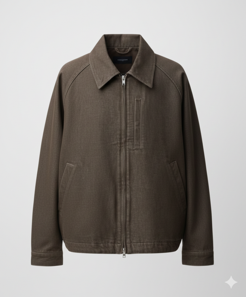 アイテム3:コットンジップアップジャケット(ブラウン)— アウターの新定番