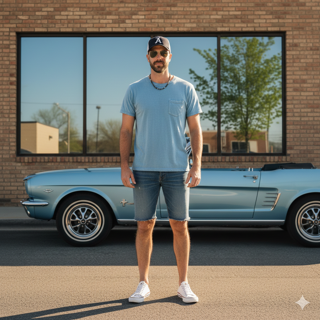 夏はシンプルにTシャツとショートパンツの組み合わせが基本です。ポケットTシャツやヴィンテージ加工のTシャツを主役に、デニムショーツやチノショーツを合わせます。キャップやサングラスでアクセントをつけると、よりアメカジらしさが出ます。