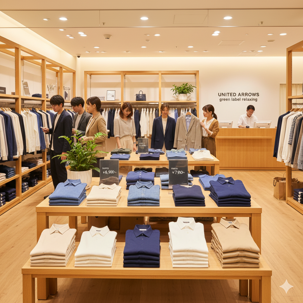 ユナイテッドアローズの中でも、特に価格を抑えた「green label relaxing」は、コスパと品質のバランスが秀逸です。きれいめカジュアルの王道を行くスタイルで、大学生から社会人まで幅広く支持されています。