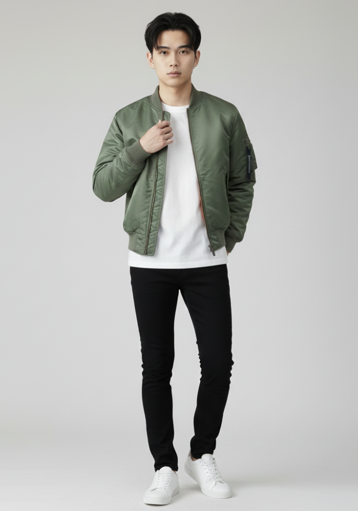 ユニクロのMA-1(used美品) + 白Tシャツ + 黒スキニー