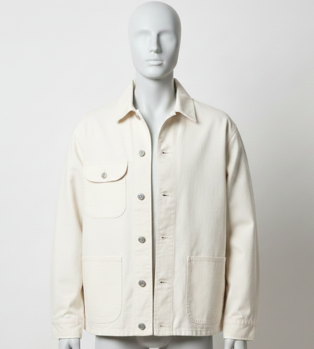 • ハリのあるしっかりとしたコットン素材で、タフなワークウェアの雰囲気を持ちつつも、クリーンなオフホワイトで洗練された印象に。