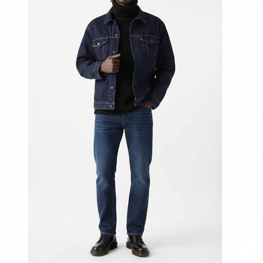 アイテム: Levis デニムジャケット(4,000円) × Levis 505(2,500円) × タートルネック(1,500円)
