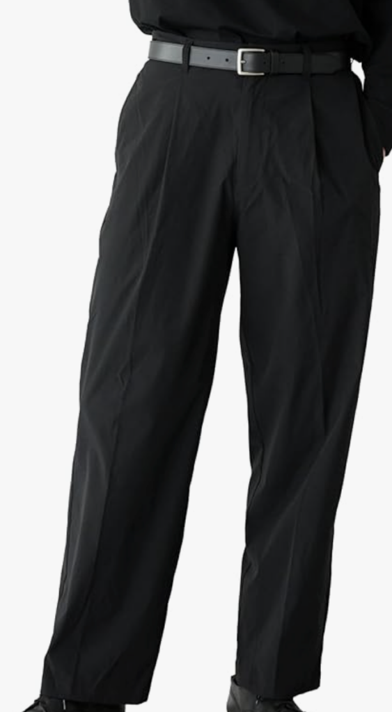 ワイドスラックス: ブラックのワイドスラックスは、センタープレスが入ったものを選ぶと、よりフォーマルな印象になります。ウール素材やウール混紡素材が、季節感と上質さを演出します。