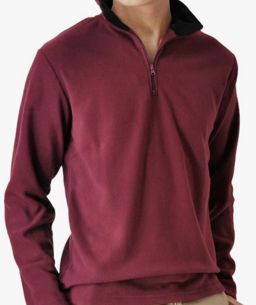 ハーフジップ: ボルドー(ワインレッド)のハーフジップが、コーディネートのカラーアクセントになっています。スウェット素材の適度なボリューム感が、レイヤードスタイルに最適です。