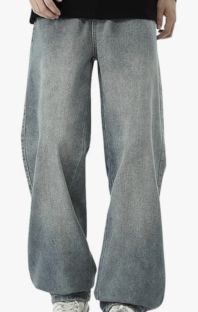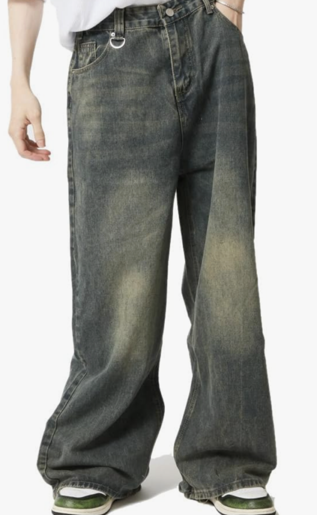 グレーワイドデニム: ヴィンテージ加工が施されたグレーのワイドデニムは、ストリートスタイルの核となるアイテムです。ハイウエストで穿くことで、脚長効果も期待できます。