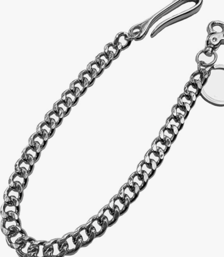 チェーン: ウォレットチェーンなどのアクセサリーが、ストリートスタイルを強調します。