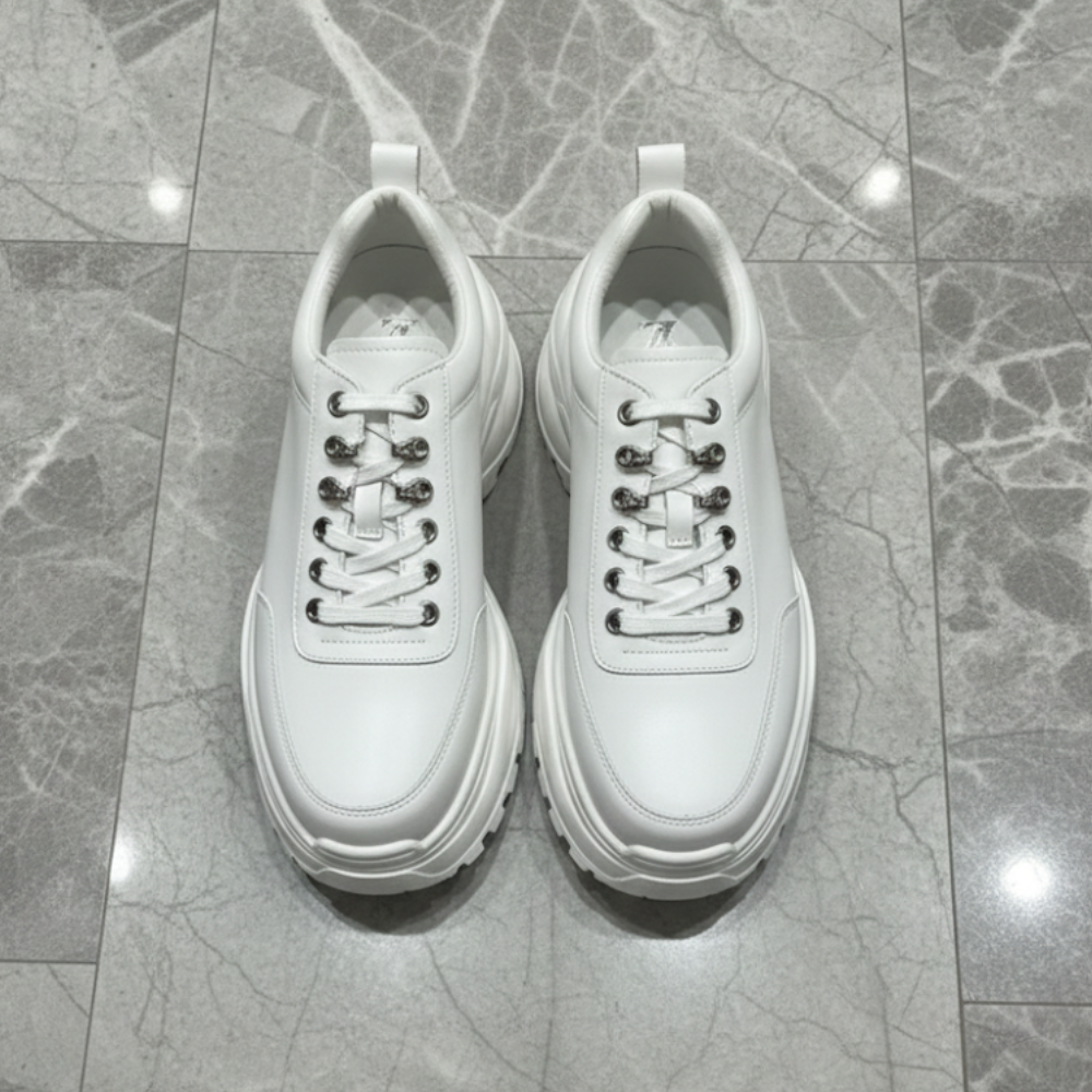 ボリューミーなソールとミニマルなアッパーのバランスが絶妙で、どんなコーデにも合わせやすい万能シューズです。