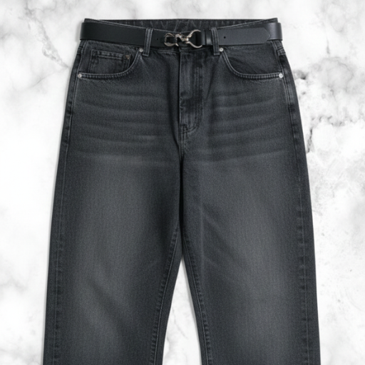 まず最初に挙げたいのがこちらです。ブラックデニムって正直どこでも買えるんですけど、このシルエット感とほんのり入った色落ち加減が絶妙すぎるんですよね。