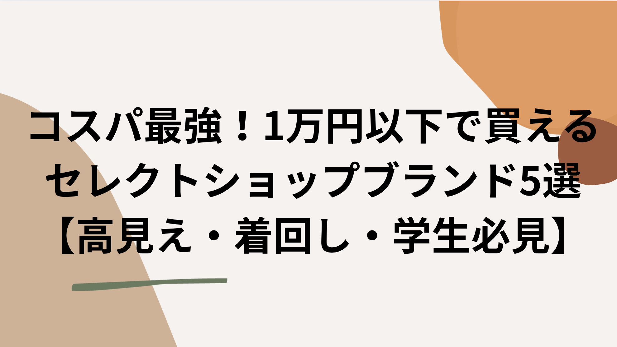 コスパ最強!1万円以下で買えるセレクトショップブランド5選【高見え・着回し・学生必見】